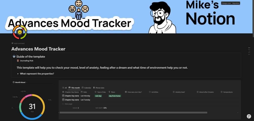 Track your emotions with ease and gain deeper insights into your daily moods and mental well-being! This interactive Advanced Mood Tracker helps you to visualize patterns, reflect on triggers, and cultivate positive habits for a balanced life. ✨
